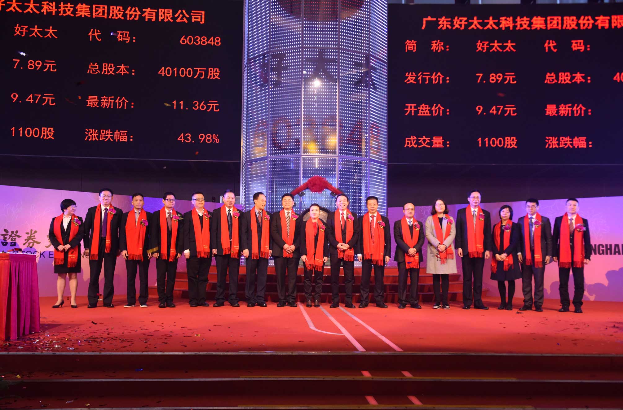 好太太集團(tuán)董事長(zhǎng)沈漢標(biāo)、集團(tuán)總裁王妙玉等領(lǐng)導(dǎo)出席上市掛牌儀式。