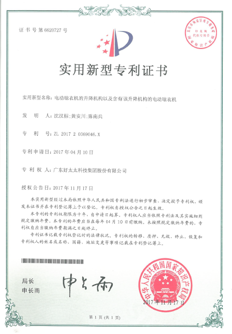 好太太GW-181 智尊系列不僅功能超強(qiáng),承重力也超乎想象,除了能一次掛滿我?guī)Щ貋淼拇罅恳路偌由先胰说囊路?、被子一起晾曬也毫無壓力。原來機(jī)身藏著好太太自主研發(fā)的動力系統(tǒng),有專利技術(shù)認(rèn)證,產(chǎn)品品質(zhì)有保障。