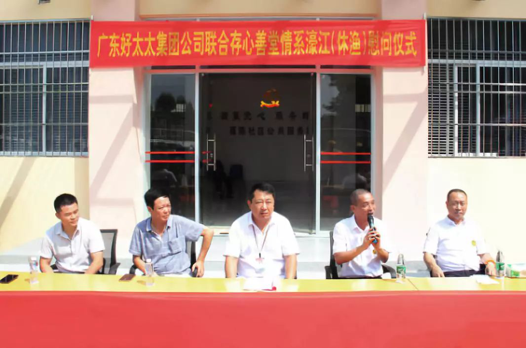 7月30日,廣東好太太集團聯合存心善堂情系濠江(休漁)慰問儀式在廣東省汕頭市舉行,濠江區(qū)民政局副局長馮春文、存心善堂會長蔡木通、以及廣東好太太集團代表尹確良經理出席了本次儀式。