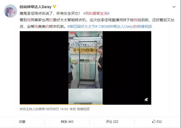 他們不僅從個人經(jīng)歷出發(fā)給粉絲分享智能家居晶智生活的體悟,并基于好太太智能家居產(chǎn)品的實際使用感受,為粉絲們強烈安利了既便捷、又安全和高效的好太太智能晾衣機、智能鎖、毛巾架等智能好物,引起了直播間內(nèi)粉絲的一頓瘋搶。