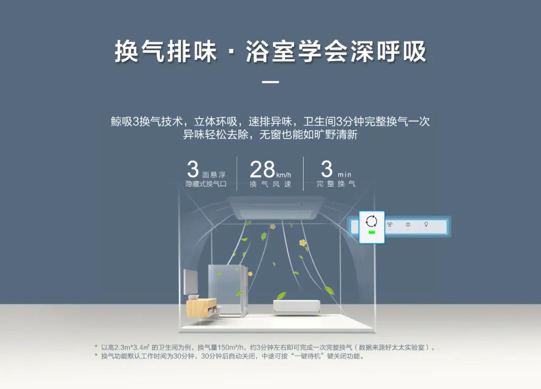 浴室有異味怎么辦?打開換氣排味功能,3面懸浮隱藏式換氣口,每小時28公里換氣風(fēng)速,3分鐘就能完整換氣一次,浴室從此學(xué)會深呼吸!
