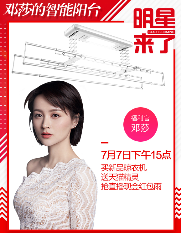 7月7日15:10—16:00,好太太官方旗艦店將邀請“超人媽媽”鄧莎親臨直播間,與我們一起面對面互動(dòng),分享她的生活態(tài)度,親測好太太與天貓精靈聯(lián)合定制的新品聲控晾衣機(jī),還有3大驚喜福利等你來!