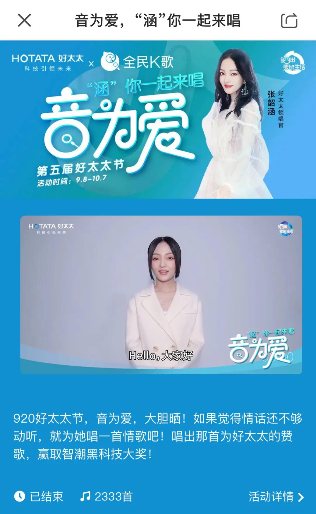 以張韶涵作為好太太領(lǐng)唱官,通過全民K歌平臺將歌聲傳遞給她