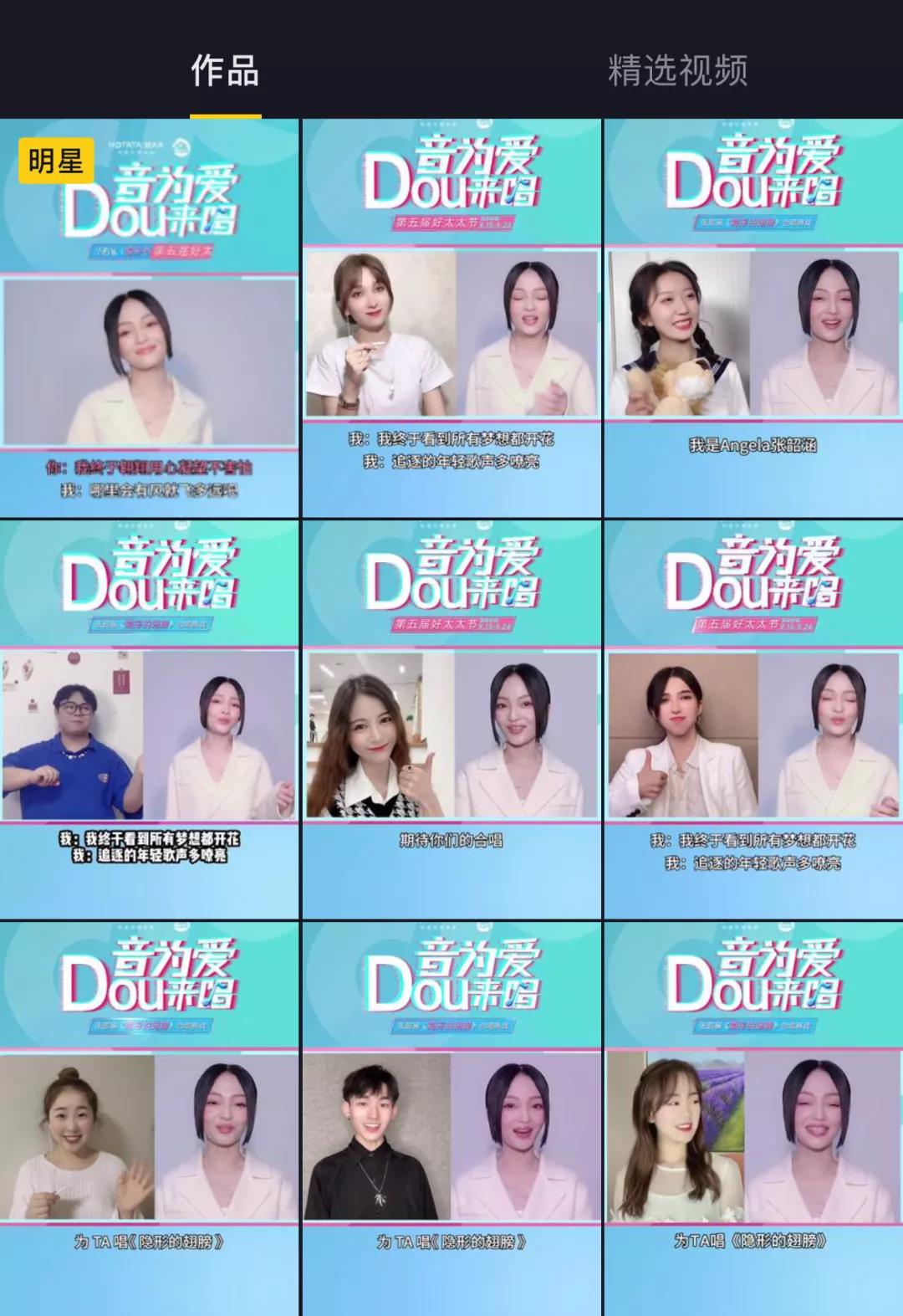 同時抖音平臺上20多位百萬粉級抖音音樂達人齊參與到#音為愛dou來唱#合拍挑戰(zhàn)賽當(dāng)中