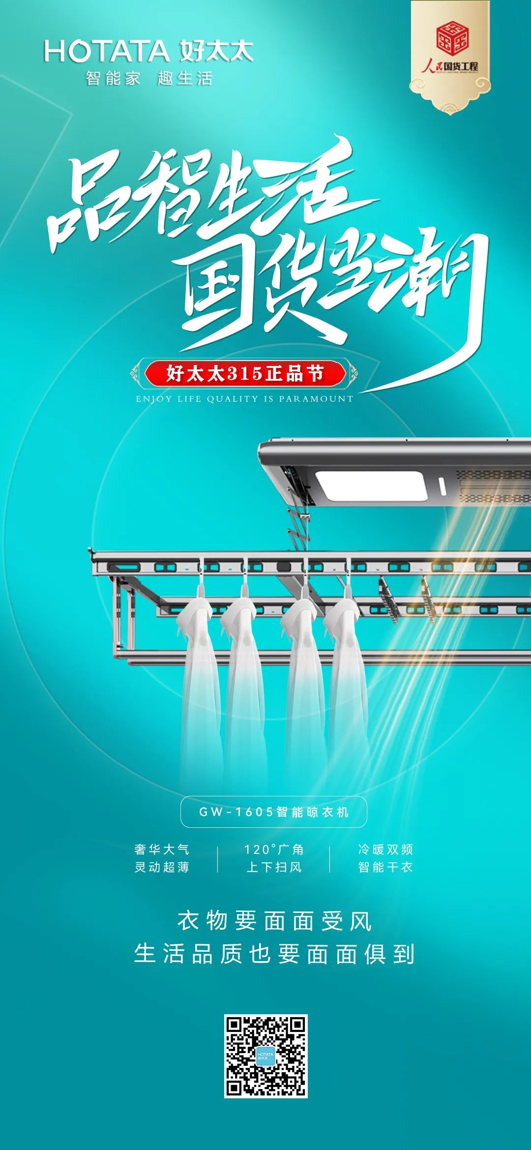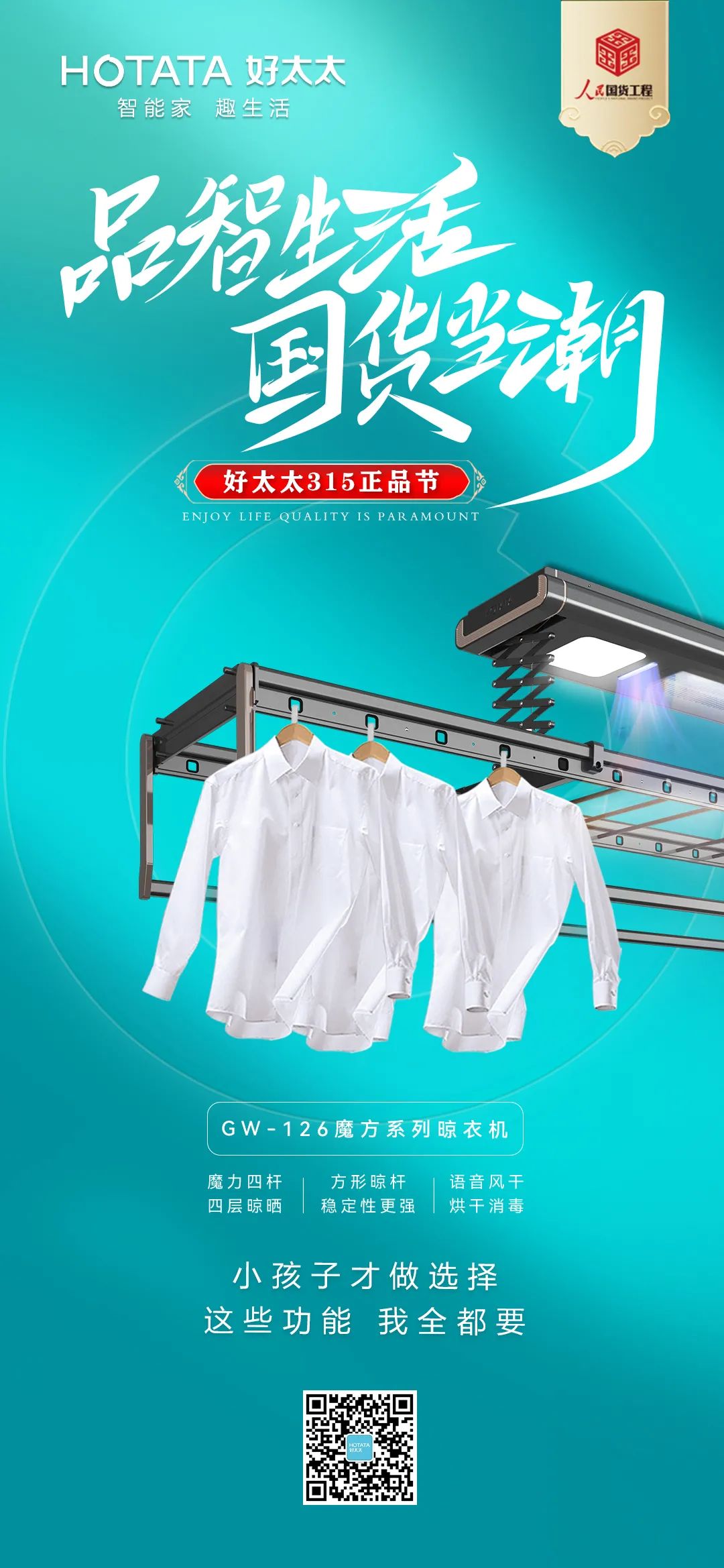 好太太作為國(guó)貨卓越品牌和晾曬行業(yè)領(lǐng)軍品牌,此次入選人民國(guó)貨工程,不僅是產(chǎn)品實(shí)力的有力證明,也是好太太品牌發(fā)展的一次躍進(jìn)。