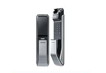 我們的下一個選擇。三星的 SHS-P718-LMK 智能鎖鎖與我們列表中的其他智能鎖不同。這款三星智能鎖不依賴于轉(zhuǎn)動把手,而是推/拉概念。