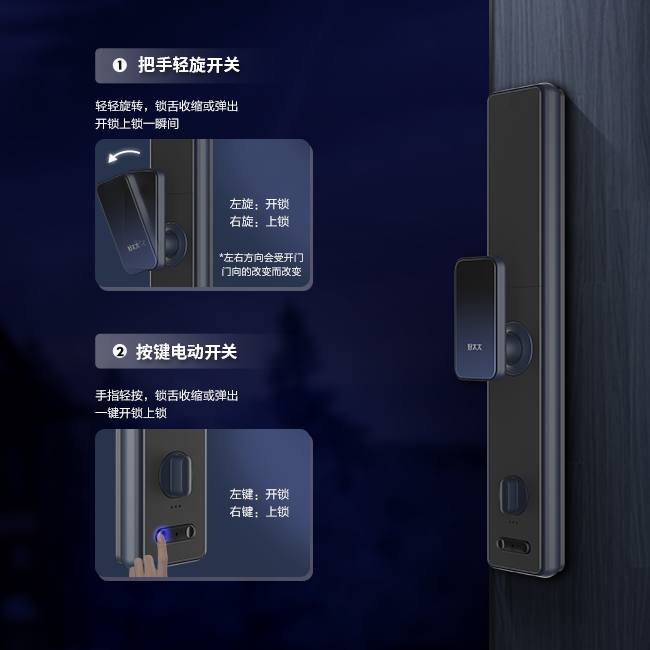 反鎖后,室外無(wú)法開(kāi)鎖,只有室內(nèi)解除反鎖才能打開(kāi),女生獨(dú)處更安心